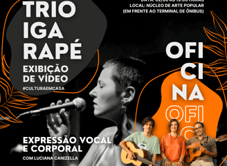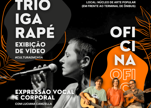 Exibição de vídeo Trio Igarapé #culturaemcasa e Oficina de Expressão Vocal e Corporal com Luciana Canizella.